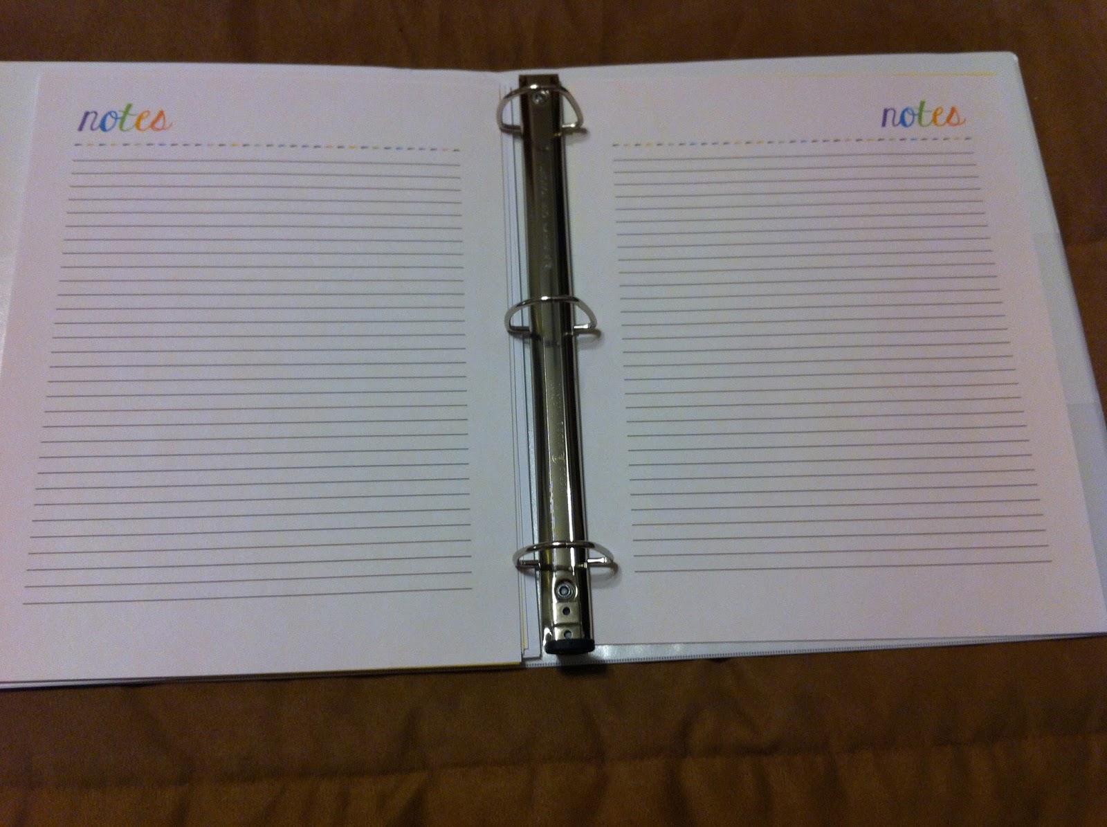 I bought a nice white 3-ring heavy-duty binder with a clear front/back for inserts at Staples today for my planner. I thought a binder would be better than coil binding because I'd be able to add/take away as needed.