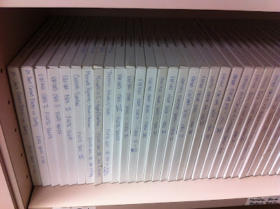 Like I said earlier, I did end up organizing the rest of the solos to take home and finish boxing up (in A/C). I also brought home the rest of the music that needs to be entered into the spreadsheet database which will be uploaded into Charms - I still have a couple boxes of pep band music to enter and file. I'm pretty sure the library will FINALLY be finished this summer. Yea!!!! I have been working on reorganizing this library since I took the job in 2007. It will be so nice once it is organized though and I can easily find and pick music to program and work on with my kids. :)