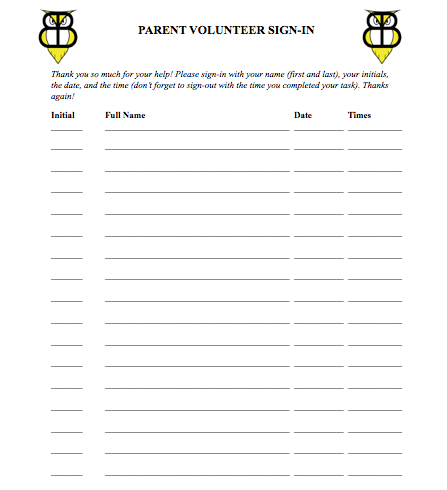 Our school offers a Parent Volunteer Award so I also created a Parent Volunteer Sign-in Sheet: