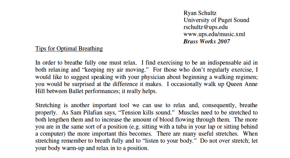 The next article I'm sharing should apply to all the low brass instruments. Well, actually to all the wind instruments in the band. It gives great breathing tips.