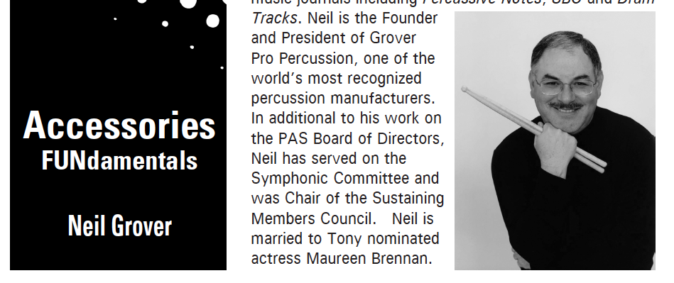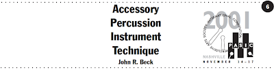 The next article is by Neil Grover again - from PASIC 2000 and includes information on Bass Drum, Cymbals, & Tambourine.