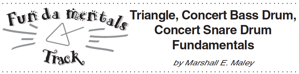 The last article I'll share with you today is by Marshall Maley and is about Triangle, Concert Bass Drum, & Concert Snare Drum. He includes a short etude he composed using all three.