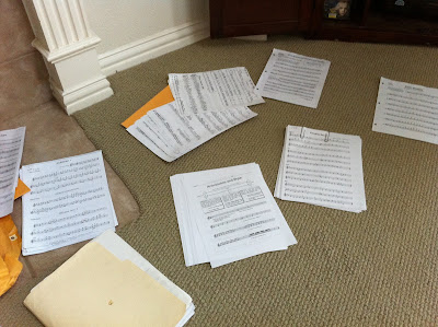 At any rate, my day consisted of sorting and more sorting and more sorting of music. At one point almost the entire living room floor was covered in piles: