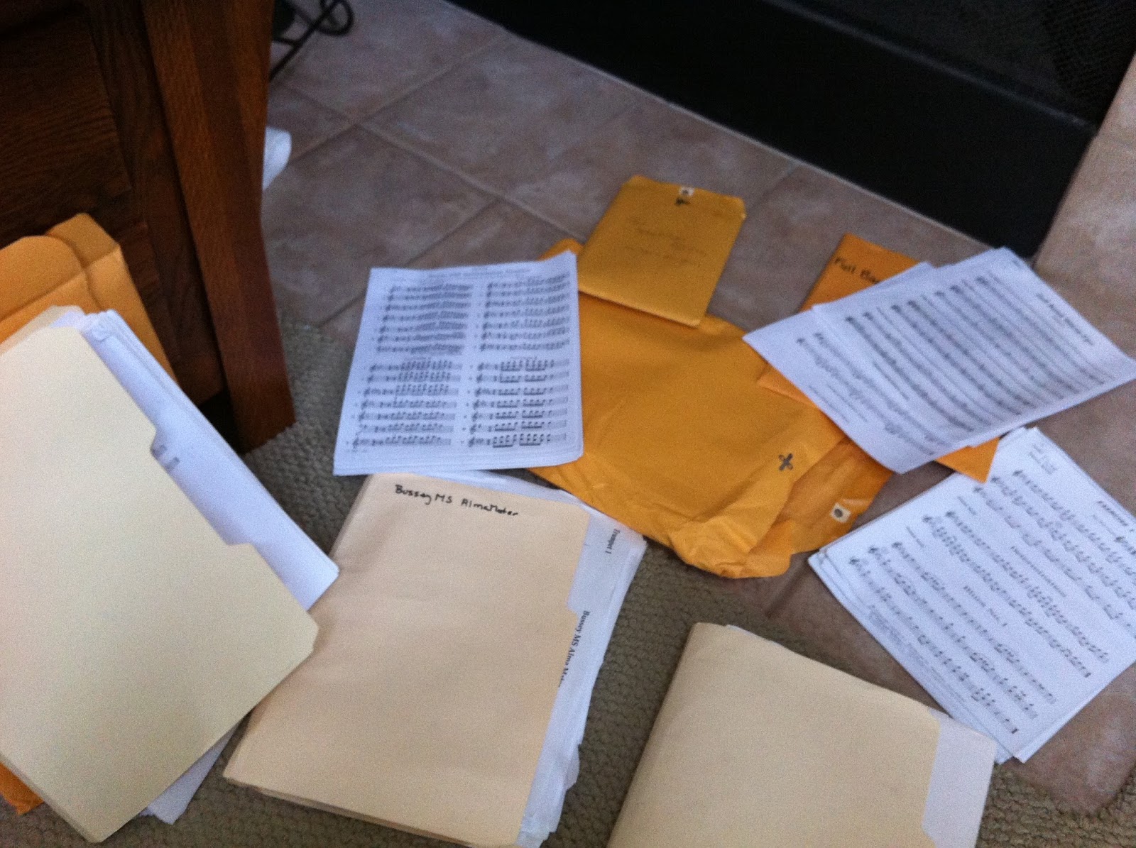Below are a number of Pep Band pieces that I will need to file in the small marching band music envelopes. I will have to buy some more from J.W. Pepper seeing as I am out.