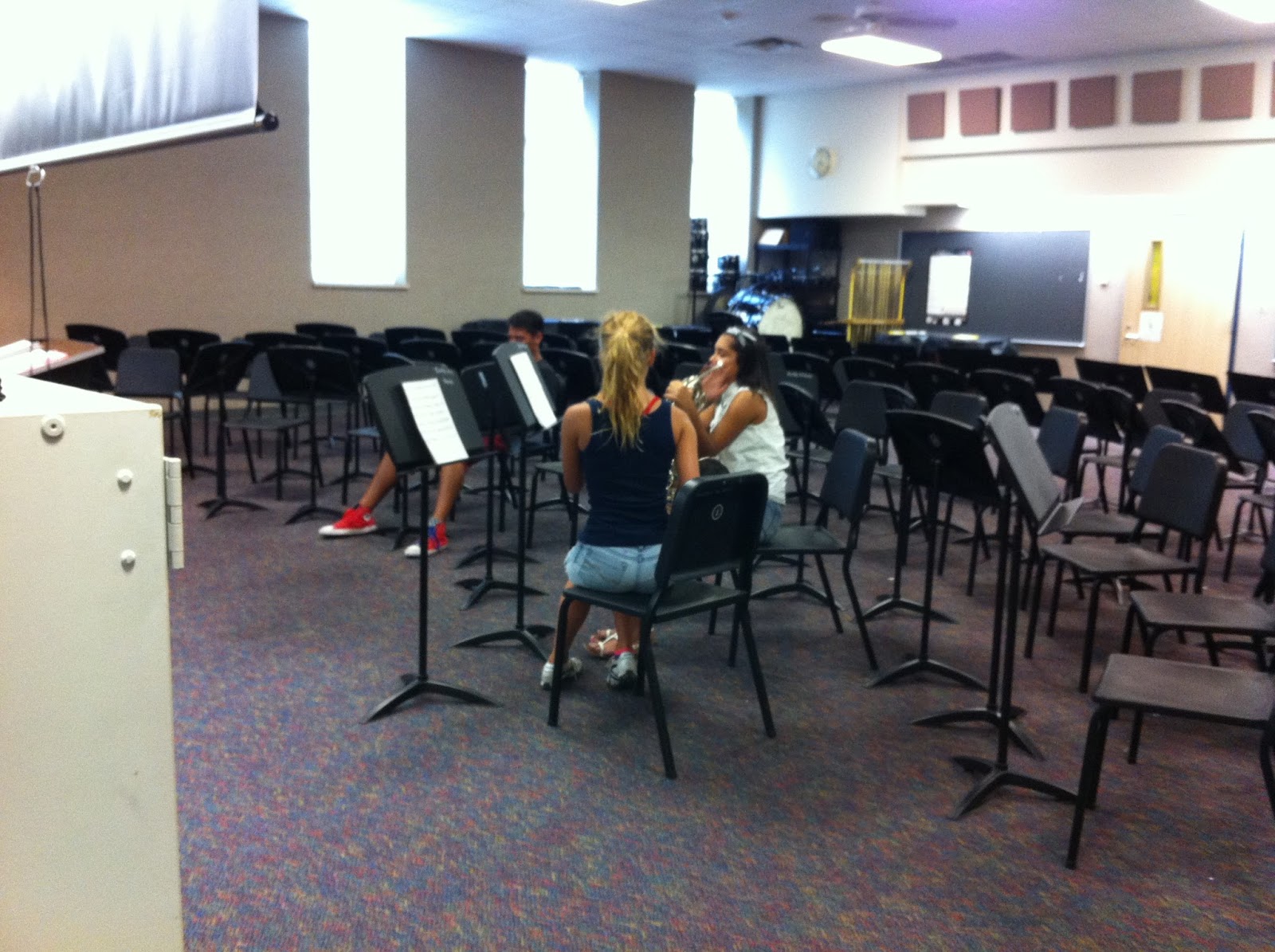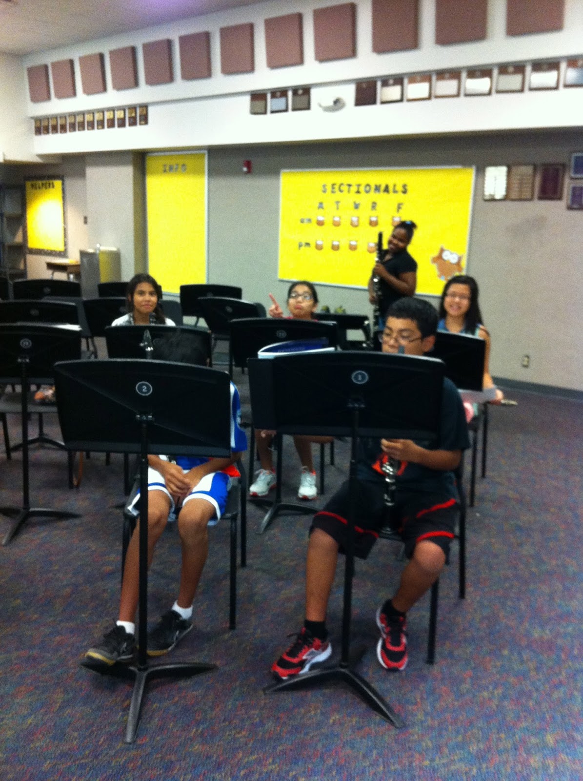 This was from the end of the sectional. The horn player was here early for her sectional. I like how she's peeking from underneath the music stand. These are such good kids!