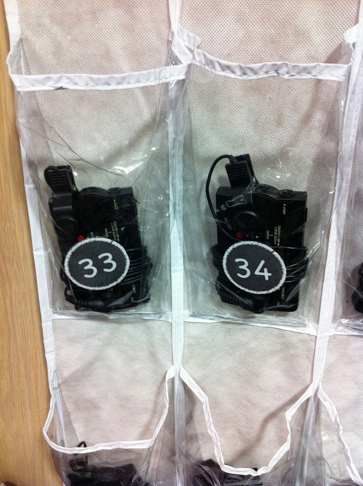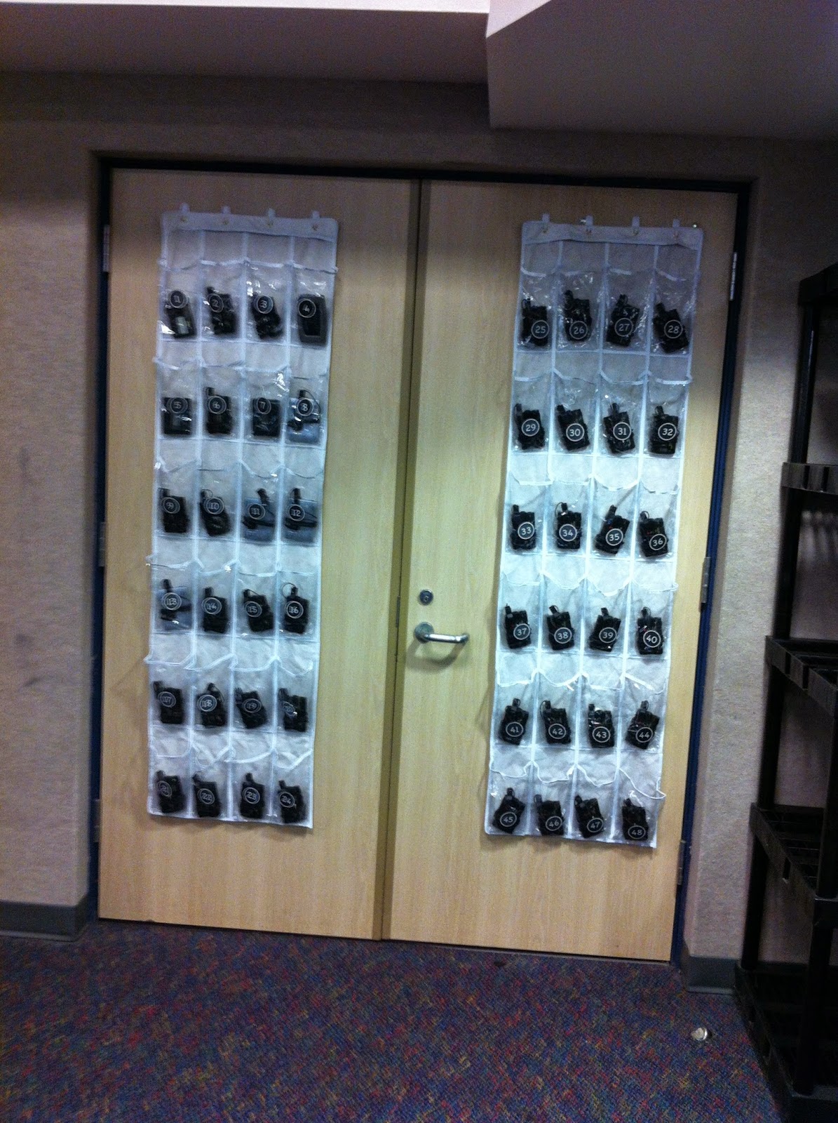 Numbering students not only helps with grading, it can help with seating charts and attendance. This can be especially helpful when you have a substitute. Band classes can be pretty large, making it very difficult to draw seating charts with names. If your students are numbered, you can use numbers on your seating chart and attach a corresponding numbered roster. Also, if you have classroom set of tuners or tuner/metronomes, you can number them and the students will use the one with their assigned number which helps with keeping track of the tuners/metronomes. If a particular numbered tuner/metronome is missing, you know who has it or who didn't put it back. I few years ago I discovered a great storage solution for the tuners - hanging shoe bags. I painted numbers and the band program name on the backs of the tuners with a white paint pen. I then created and laminated labels for each clear pocket. The students were trained to take their assigned tuners to their seat each period and to return them at the end of class. I also taught them to unplug them and how I like them to wrap the cord. I had them unplug them to make the batteries last longer. Keeping them plugged in draws power/juice out of the batteries even if turned off. Note: if you use the shoe bags too, make sure they are clear so that you can see if the students accidentally left them turned on (you'll be able to see the lights).