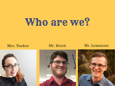 A minute or two after the bell, we will start class by saying, "Good morning, class!" and will teach them to respond with, "Good morning, Mrs. Tucker! (or whomever addresses them)." We'll then teach the beginners our band mantra because it is our next call and response. We say, "Tennyson band students are what three things?" and they respond with, "Respectful, Responsible and Hardworking!" We will be able to just do the call and response with the advanced band kids because they have been trained to do it every day. We will then tell the students a little bit about us three directors (our backgrounds, what we want the kids to know about us, unique things that even the advanced band students may not know yet). I'll change to this slide so the kids can see how our names are spelled and put a face to a name: